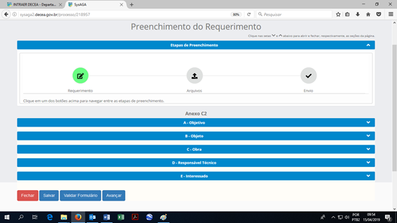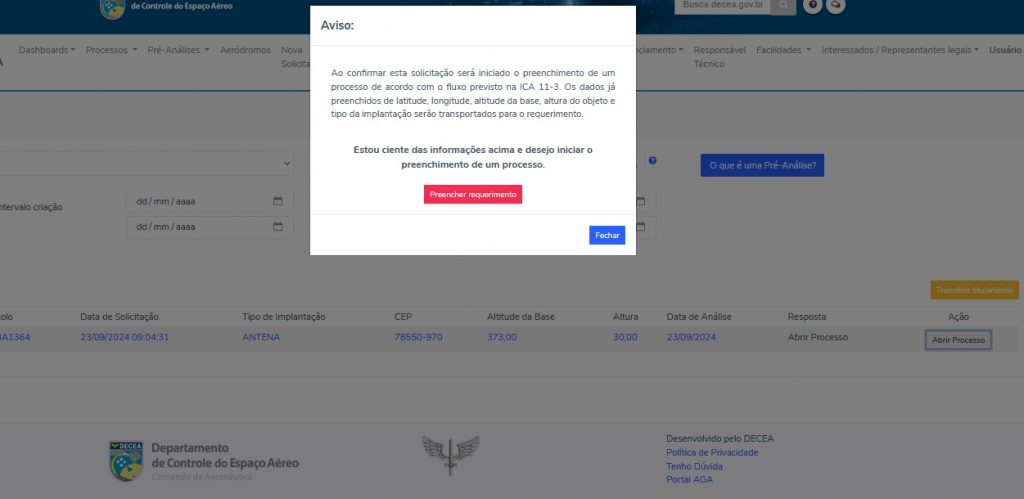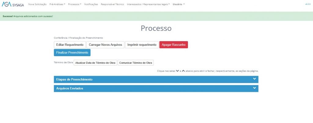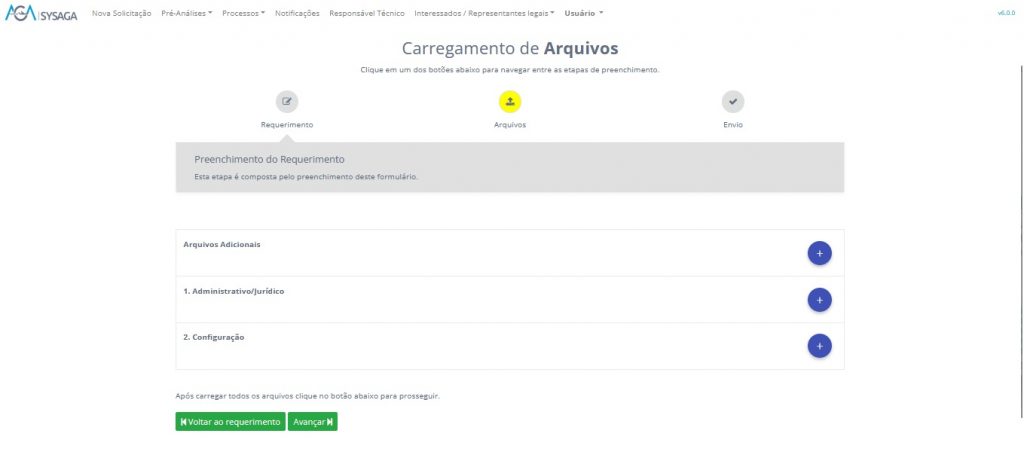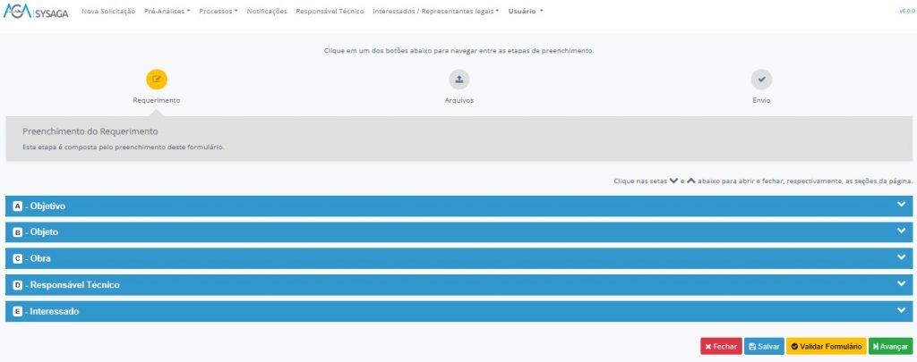 No caso de, após submeter os dados da edificação que se pretende construir para a pré-análise do SysAGA, o requerente receber a não aprovação devido às características do empreendimento, deve-se abrir um processo. Os seguintes passos devem ser observados: