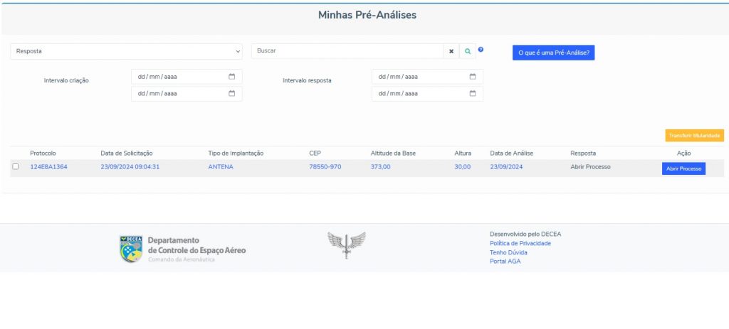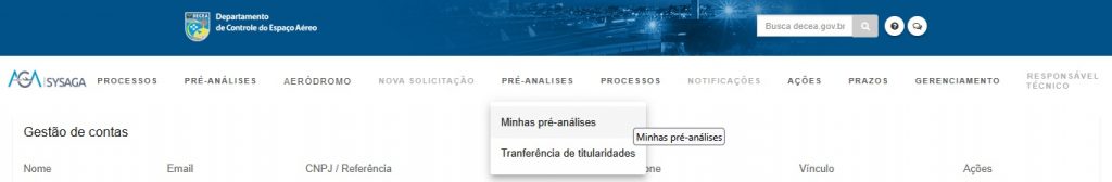 1 – Após logar no SysAGA, selecionar Minhas pré-análises, clicar em Abrir processo ao lado do respectivo processo.