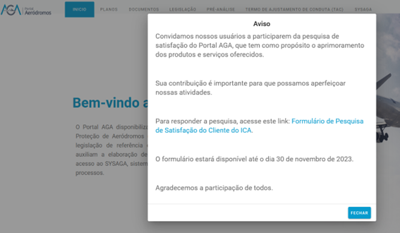 Neste exemplo temos o título Pesquisa de satisfação do ICA, que não aparece no aviso.